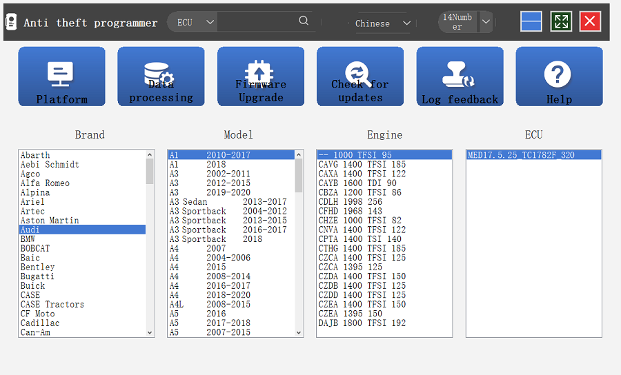 (1) Method 1: Obtain the desired ECU type through brand > model > engine > ECU in turn, as shown in Figure 2.